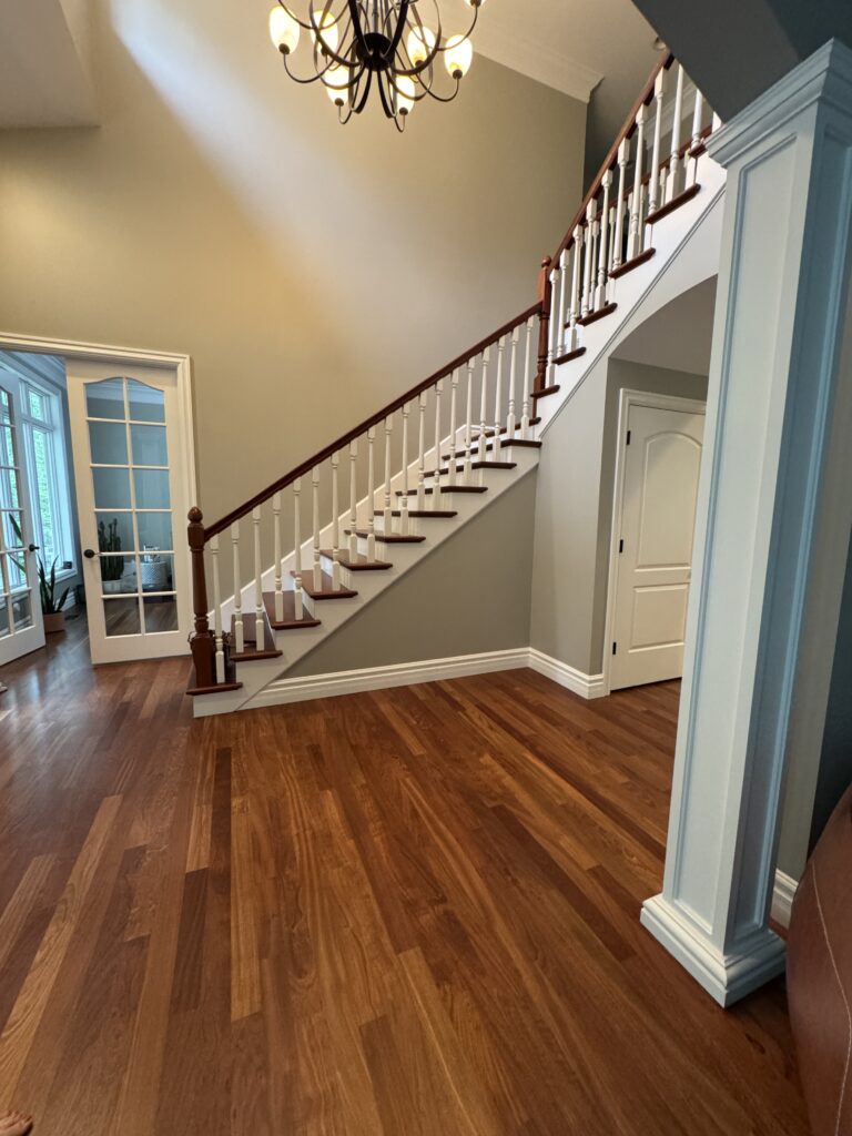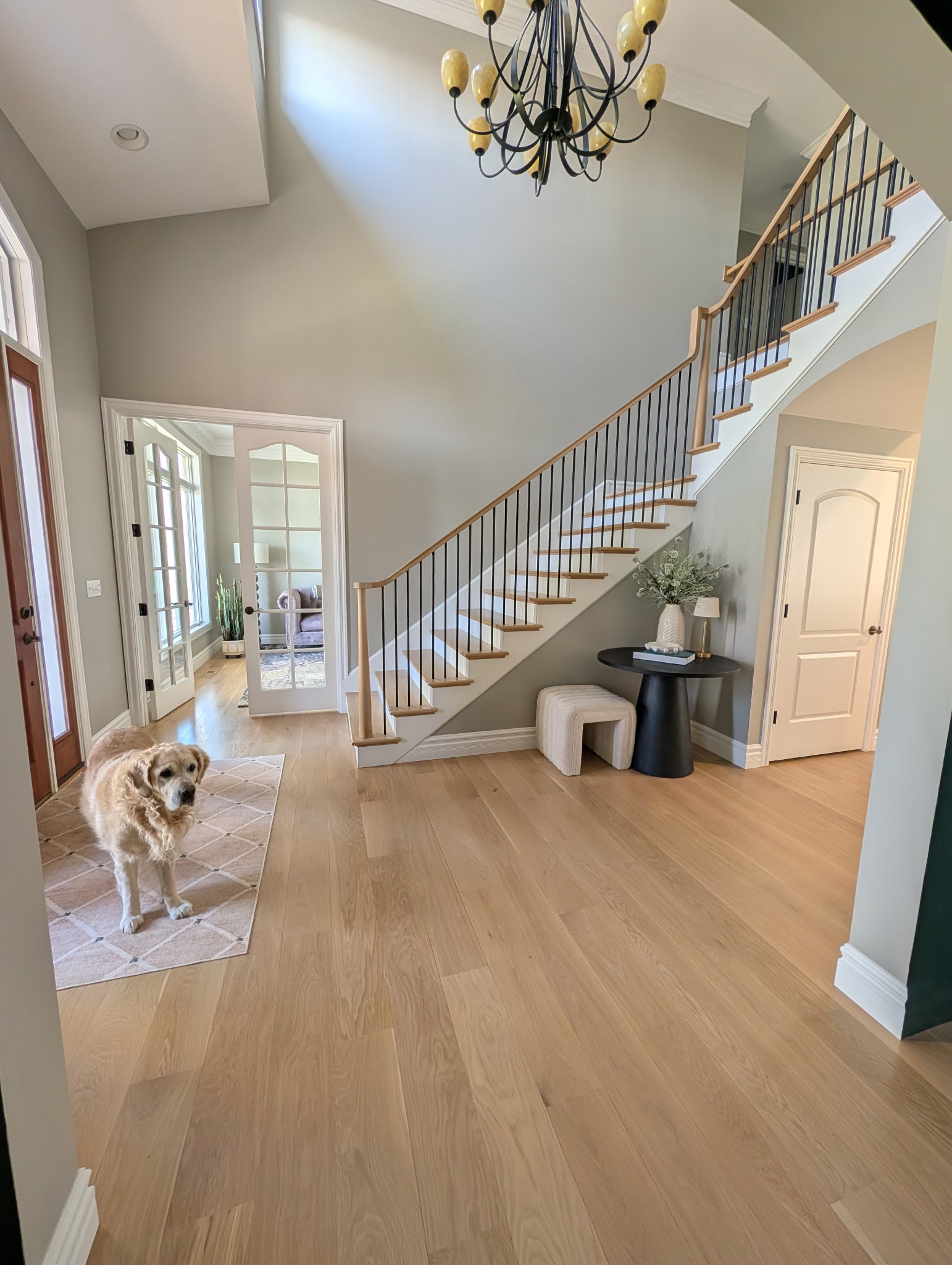 Primary Designer. The homeowners were looking to make their new home more “them”, and we started with new floors and a new foyer to set the tone. New lighting coming next week!