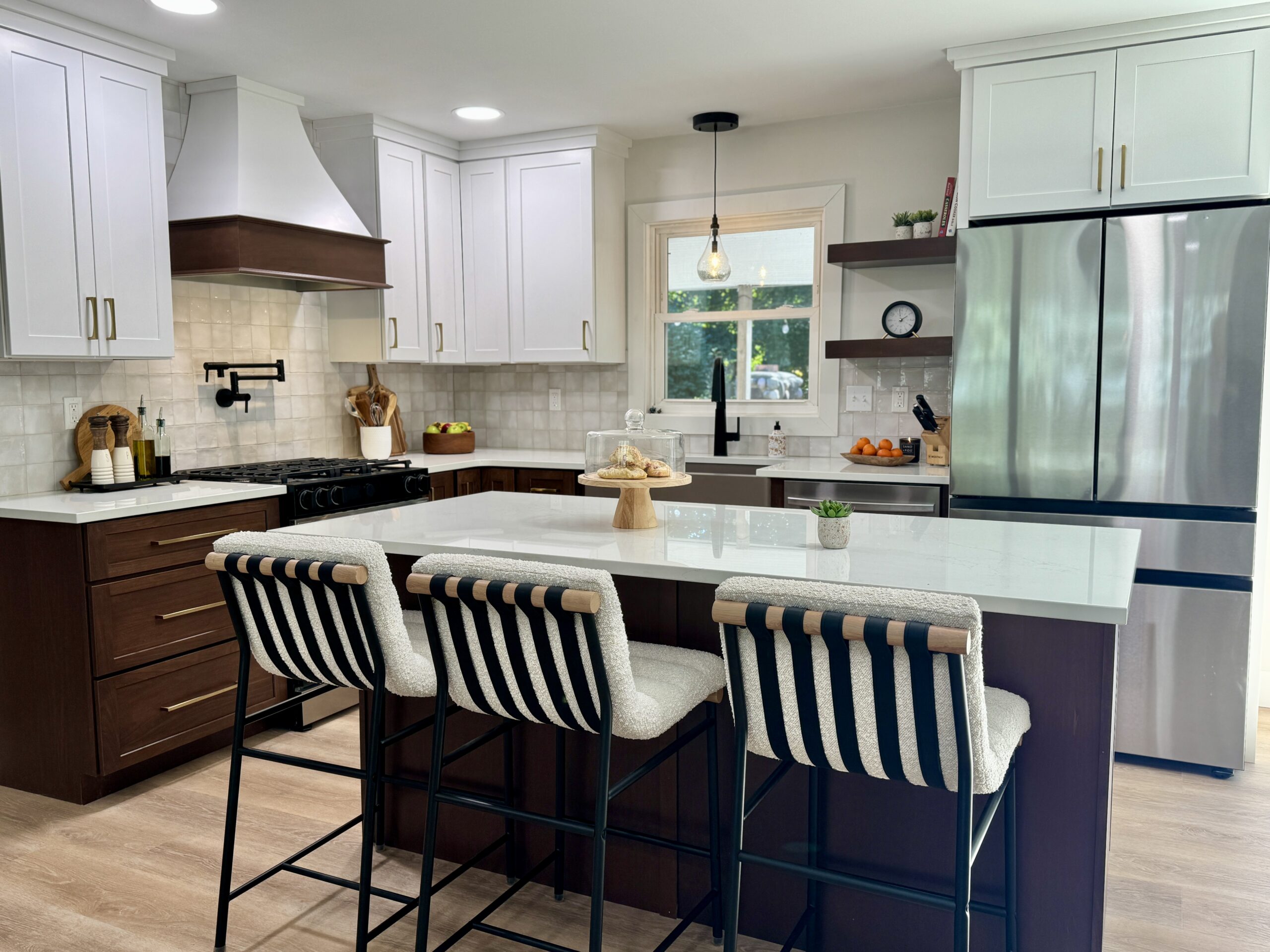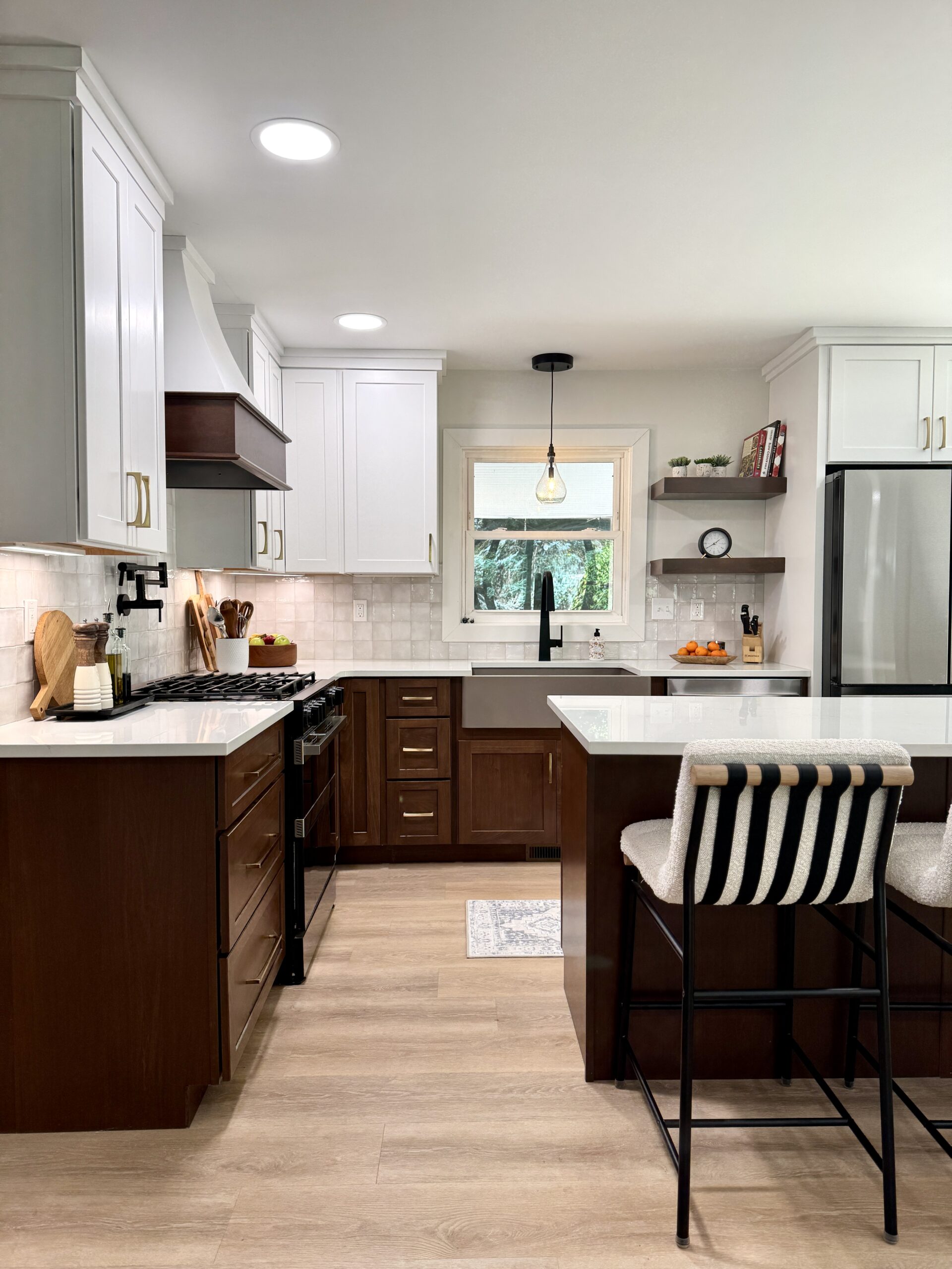Primary Designer. Without changing the footprint of this space, except for flipping the peninsula, we completely updated the look and functionality of this kitchen.