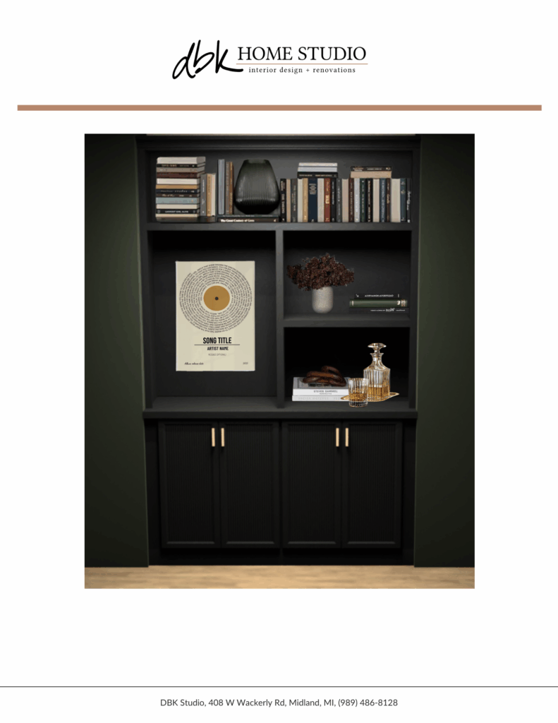 Consultant. I consulted with a project manager at DBK on this beautiful media center that transformed this plain living room into the fun, game-day watching spot everyone wants to be in!
